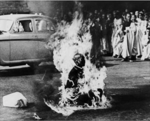 Thích Quảng Đức vietnámi szerzetes, aki a kormány buddhistákkal szembeni bánásmódja ellen tiltakozott azzal, hogy felgyújtotta magát. Bár tette miatt az ügy nagy nyilvánosságot kapott, végül a kért változtatásokat nem vezették be. Áldozata tehát hiábavaló volt.